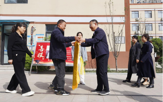 4月8日上午,陈想同学和家长一起回到科工,为学校献上充满感激之情的锦旗,以此表达对学校悉心教育与关怀的深深谢意。郑州市科技工业学校校长郭国峰、副校长闫英杰等领导热情接待了学生及家长。