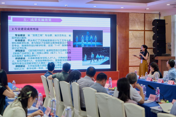 郑州市科技工业学校副校级干部花芬结合本校实践经验,以《三元协同、四能递进、八全联动:培养中职服装专业 “新学徒” 的探索与实践》为题,分享创新人才培养模式,展示校企协同育人的成功案例。