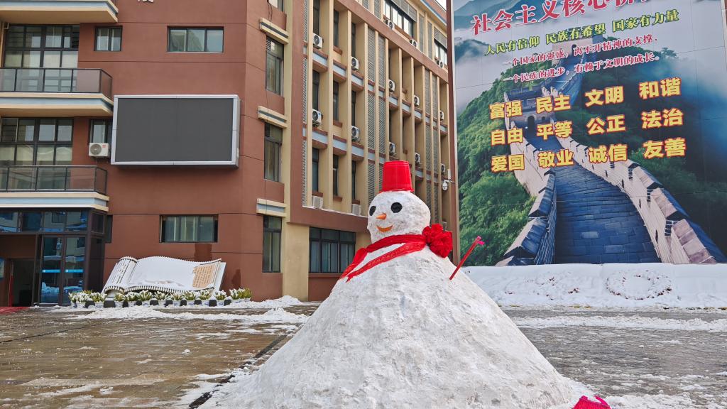 天刚蒙蒙亮,寒意正浓,学校巡逻队队员便协同总务处后勤保障人员,手持清扫工具奔赴各责任区域。在“榜样”的带动下,教职工们迅速集结,学生志愿者也踊跃参与,大家自发组成扫雪队伍,按照“先主干道、后支路,先教学区、后生活区”的原则,有条不紊地开展清扫工作。扫雪现场,挥舞的扫帚、挥动的铁铲与师生们的欢声笑语交织在一起,构成了一幅温暖的校园雪景图。有的负责清扫浮雪,有的专注铲除结冰,有的默契配合清运积雪,大家不畏严寒、分工协作,干劲十足。过程中,师生们还将清理出的积雪精心堆成一个个憨态可掬的雪人,为寒冬校园增添了几分童趣与温馨。