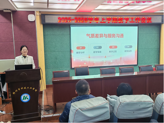 在优秀教学成果展示环节,荣获全国中等职业学校教学设计与展示活动典型案例(一等奖)的学生处副主任韩小娟进行了精彩的说课展示。她以“气质差异理论在民航服务场景中的应用”为主题,紧扣民航服务实际需求,通过案例分析、角色扮演等互动环节,引导学生识别不同气质类型旅客的特征,并设计针对性服务沟通策略,有效提升了学生在个性化服务方面的综合能力。该课程设计体现了理实一体职教理念,为全校教师提供了有益借鉴。