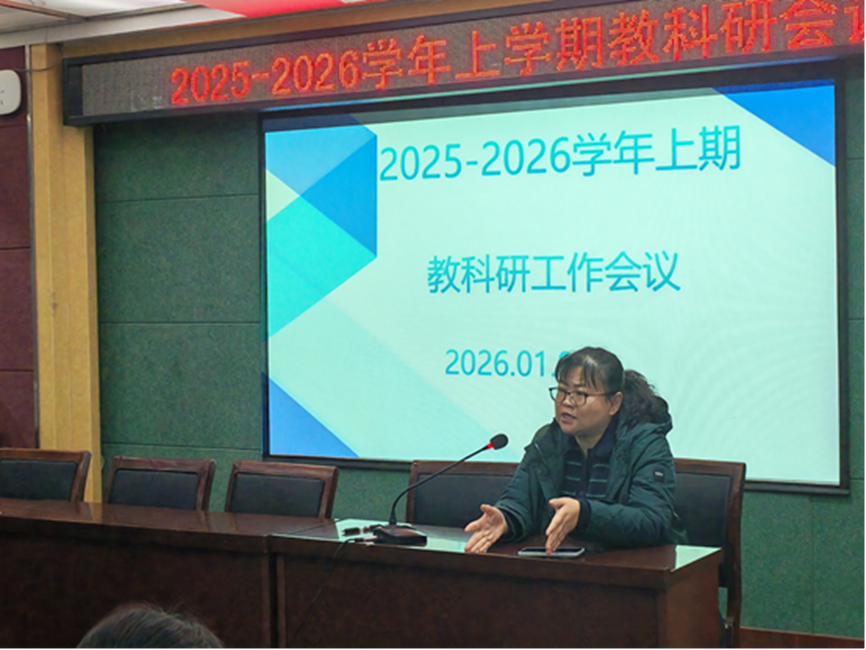 最后,教务处副主任王中媛聚焦教科研工作质量提升,进行了专项部署。她系统梳理并进一步明确了校级课题申报与管理的具体要求,对在研课题进行了针对性指导。王主任还对过去一年的教科研工作进行了总结回顾,在肯定成绩的同时,对新一年的课题申报、成果培育、研究推进等工作进行了提前规划和动员,旨在营造更加浓厚的教研氛围,以科研反哺教学,助力学校内涵发展。