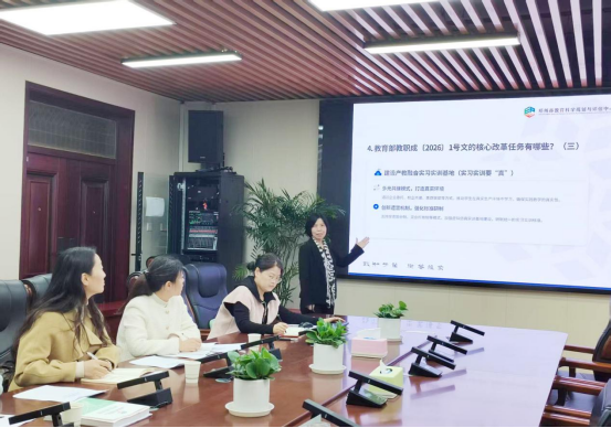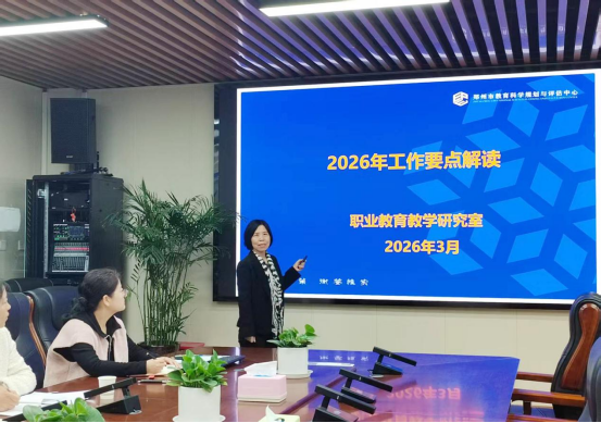 会议首先聚焦理论学习环节。在郑州市教育科学规划与评估中心教研员崔蕾带领下,与会人员重点研读了《教育部关于深化职业教育教学关键要素改革的意见》《河南省教育厅关于做好2026年河南省职业教育贯通人才培养改革工作的通知》等文件,明确了教育教学改革的核心目标、先进教育理念的实践路径及教学经验的总结方法,为后续教学实践提供了坚实的理论支撑。